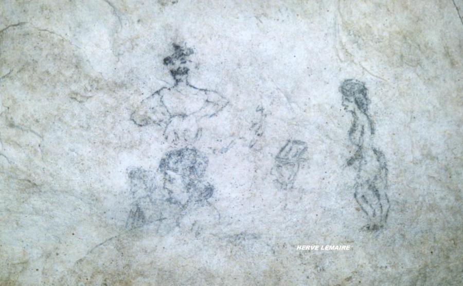 pages d'écritures ; en noir de fumée sur la voute d'une poche , et le dessin du coin toilette ;