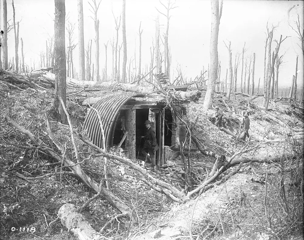 dans le bois non loin de celui de thélus , un abri en tôlle , pour les pièces d'artilleries , ils seront vite remplacés par des en bétons ;